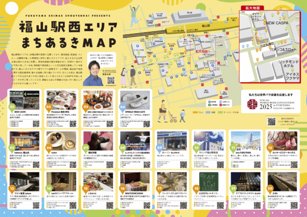 当商店会は、福山市のターミナル駅であるJR福山駅の最寄に位置する商店会で、路面店を中心に、宿泊関係、飲食関係、コンビニ、公園等が揃った利便性に富んだエリアです。 主となる三之丸町は福山城の三之丸に位置し、歴史的遺産の観光資産があり、石垣の一部がエリア内に残っている他、博物館や美術館といった文化施設も隣接している地域でもあります。 路上におけるテラス席やリアル謎解きゲームの開催、福山城や地域に関する歴史教育等、様々な施策に取り組んでいます。