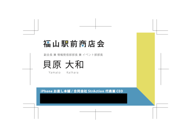 川上会長をはじめ、役員や役職の交代が複数ともなったこのタイミングに、福山駅前商店会のロゴと名刺のデザインを刷新いたしました。